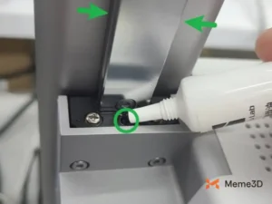 Tiếp theo, thoa một lượng nhỏ dầu dọc theo toàn bộ chiều dài của thanh dẫn hướng tuyến tính. Sau khi thoa, di chuyển đầu in dọc theo trục X để dầu được phân bố đều. Điều này sẽ giúp dầu đến được các ổ bi. Cuối cùng, lau sạch lượng dầu thừa có thể còn sót lại trên thanh dẫn hướng tuyến tính.