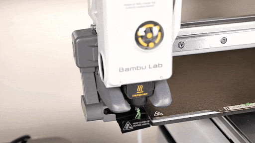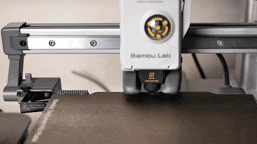 Bạn sẽ nhận thấy máy in thực hiện một số quy trình khác nhau. Quy trình đầu tiên là làm sạch vòi phun bằng cách lau vòi phun trên cần gạt để đảm bảo không còn sợi nhựa nào bám trên đó.