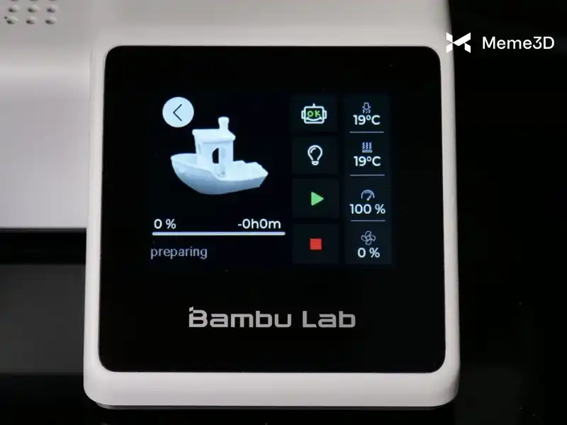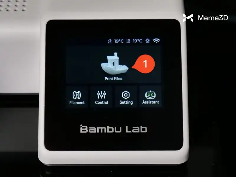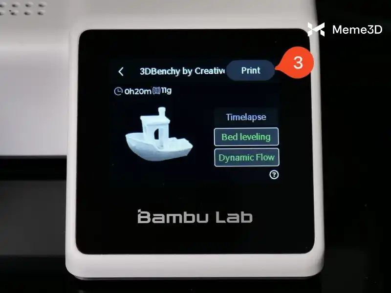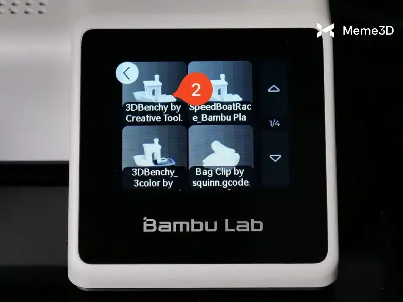 Tất cả máy in 3D Bambu Lab đều được cài đặt sẵn các mô hình thử nghiệm mặc định, có thể in từ bộ nhớ của máy hoặc thẻ MicroSD đi kèm. Chúng tôi khuyên bạn nên bắt đầu với mô hình 3D Benchy, vì đây là cách tốt để xác nhận máy in hoạt động như mong đợi, và thời gian in cũng tương đối ngắn.