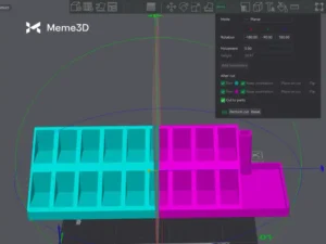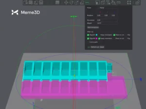 Trong ví dụ này, chúng ta sẽ chia mô hình thành hai mảnh có thể dán lại với nhau sau khi in. Bắt đầu bằng cách xoay mũi tên tròn màu xanh lá cây để điều chỉnh hướng cắt. Cố gắng cắt ở góc 90 độ , điều này đảm bảo đường cắt gọn gàng và vẫn giữ được khả năng in.