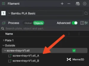 Chọn tùy chọn ” Cắt thành các phần” và chỉ cần nhấp vào nút “Thực hiện cắt” . Ban đầu, có vẻ như không có gì thay đổi, nhưng mô hình của bạn giờ đã được chia thành các phần riêng biệt, có thể thấy trong tab “Quá trình xử lý đối tượng”.