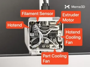 Trong một số trường hợp, bạn có thể cần truy cập vào bảng mạch đầu in (Toolhead Board), nằm phía sau động cơ đùn. Những lý do phổ biến để truy cập vào bảng mạch này bao gồm thay thế cụm gia nhiệt đầu in (Hotend Heating Assembly) do hỏng hóc hoặc hư hại, hoặc sửa chữa cáp cảm biến sợi nhựa bị hỏng.