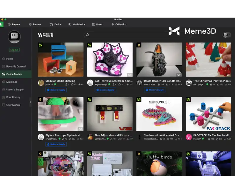 Trong Bambu Studio, bạn cũng có thể sử dụng MakerWorld , trang web mô hình 3D của Bambu Lab, nơi bạn có thể truy cập vô số mô hình 3D miễn phí để in. Sau khi tìm được mô hình phù hợp, chỉ cần nhập nó và gửi đến máy in.