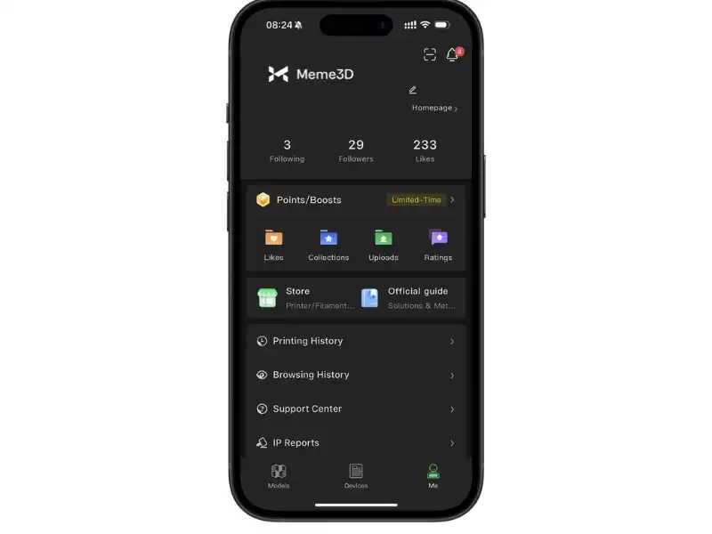 Bên cạnh các tính năng in 3D, bạn cũng có thể truy cập thông tin tài khoản Bambu Lab của mình để mở yêu cầu hỗ trợ khách hàng nếu cần trợ giúp, và truy cập Wiki của Bambu Lab nếu muốn tìm hiểu thêm về in 3D.