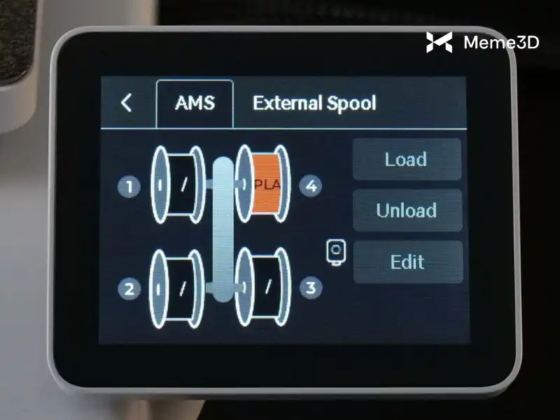 Nếu bạn sử dụng sợi in 3D của Bambu Lab , hệ thống sẽ tự động phát hiện và hiển thị loại và màu sắc sợi in trên màn hình bằng cách quét chip RFID trên cuộn sợi. Tuy nhiên, nếu bạn sử dụng sợi in của bên thứ ba, bạn cần chỉnh sửa thủ công từng mục trong cuộn sợi để chỉ định đúng loại và màu sắc. Điều này đảm bảo máy in được thiết lập đúng cách cho loại sợi bạn đang sử dụng.