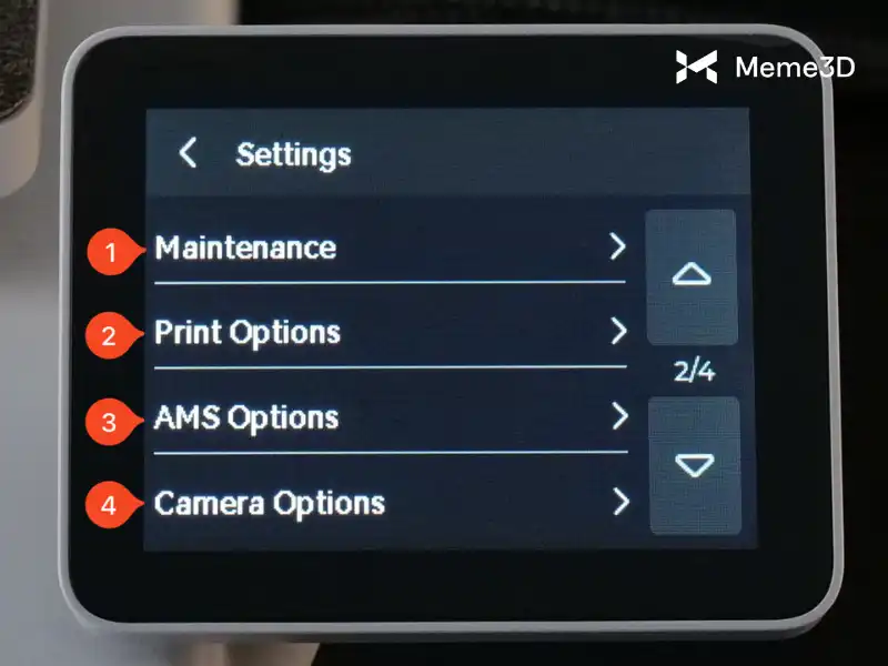 - Tùy chọn AMS – Mở một menu phụ để cấu hình cài đặt cho hệ thống vật liệu tự động AMS lite (nếu được kết nối với máy in).