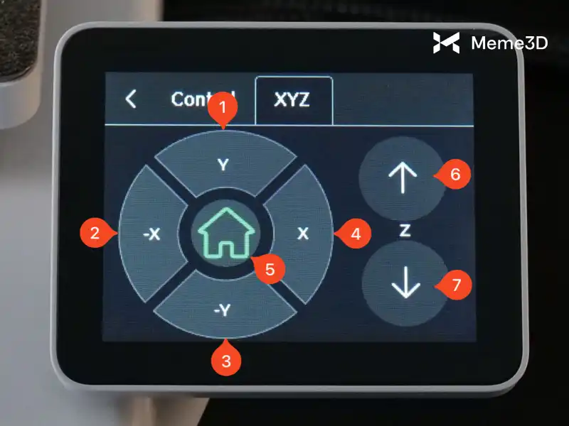 - Nút Home – Di chuyển tất cả các trục của máy in về vị trí ban đầu, căn chỉnh vòi phun vào giữa bàn nhiệt.
