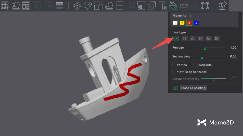 Nếu công cụ Tô màu không phù hợp với mô hình của bạn, một lựa chọn tuyệt vời khác là công cụ Vẽ hình tròn . Công cụ này cho phép bạn tự do vẽ trên mô hình, tô màu chính xác ở những vị trí cần thiết.
