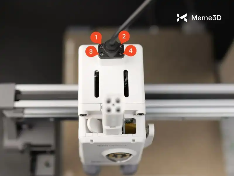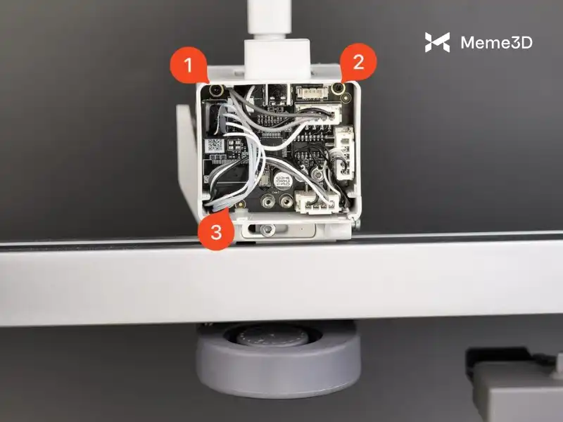 Trong một số trường hợp, bạn có thể cần truy cập vào bảng mạch đầu in (Toolhead Board), nằm phía sau động cơ đùn. Những lý do phổ biến để truy cập vào bảng mạch này bao gồm thay thế cụm gia nhiệt đầu in (Hotend Heating Assembly) do hỏng hóc hoặc hư hại, hoặc sửa chữa cáp cảm biến sợi nhựa bị hỏng.