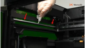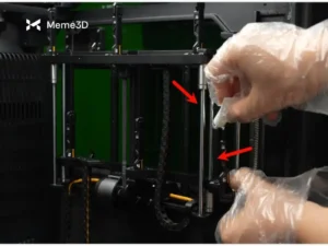 Sau khi làm sạch kỹ lưỡng thanh dẫn hướng tuyến tính, hãy bôi dầu bôi trơn vào đó. Tránh bôi quá nhiều dầu vì nó có thể nhỏ giọt xuống dây đai, điều này cần tránh.