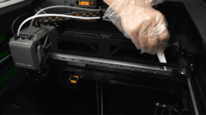 Khi in bằng các loại sợi như ABS hoặc ASA, cần vệ sinh ray dẫn hướng thường xuyên hơn, vì một số hợp chất hữu cơ dễ bay hơi (VOC) thải ra trong quá trình in có thể bám vào ray dẫn hướng.