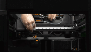 Máy in 3D Bambu Lab H2C sử dụng ray dẫn hướng tuyến tính cho hệ thống chuyển động trục X. Ray dẫn hướng này nhẹ, cứng cáp và được kết hợp với các ổ bi ma sát thấp nằm trong đầu in, giúp loại bỏ phần lớn ma sát giữa đầu in và ray dẫn hướng, cho phép đầu in di chuyển rất nhanh và chính xác.