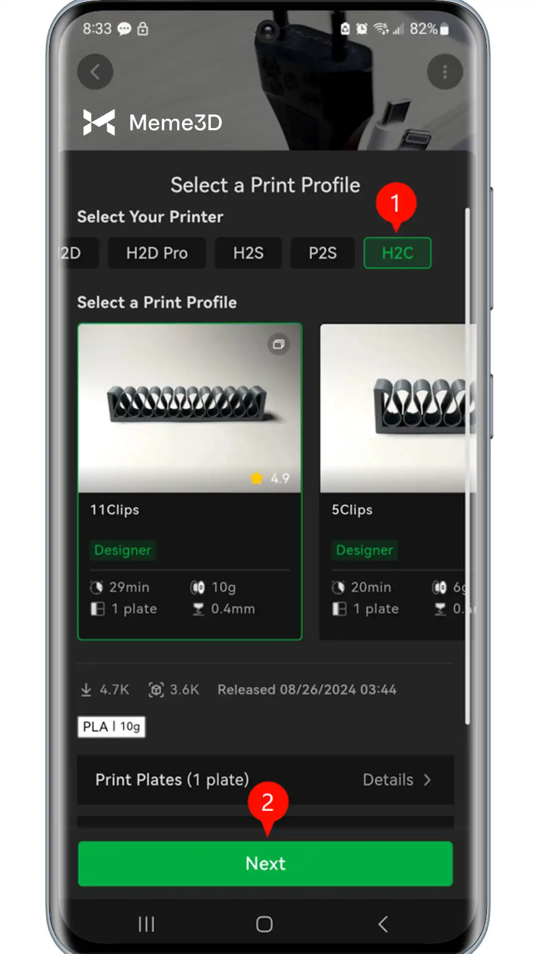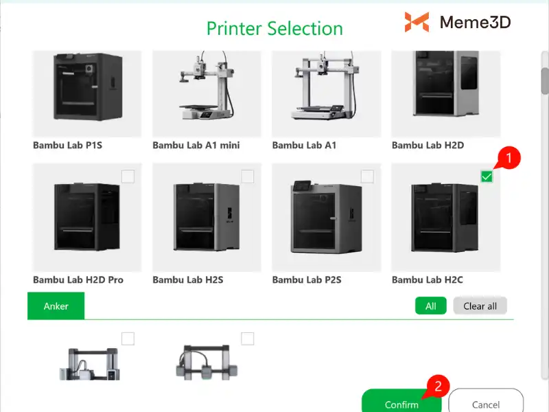 Tìm và chọn ô máy in 3D H2C rồi nhấn Xác nhận.