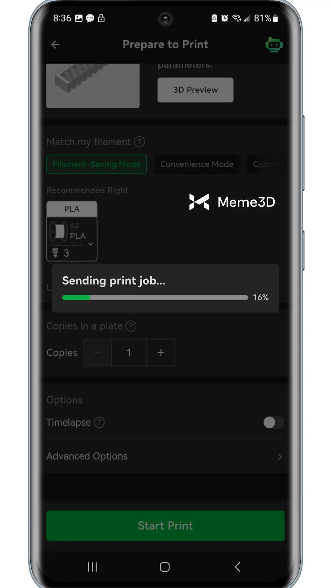 Vậy là xong! Dễ dàng phải không? Giờ chỉ cần nhấn nút Bắt đầu in . Ứng dụng Handy sẽ gửi mô hình không dây đến máy in.