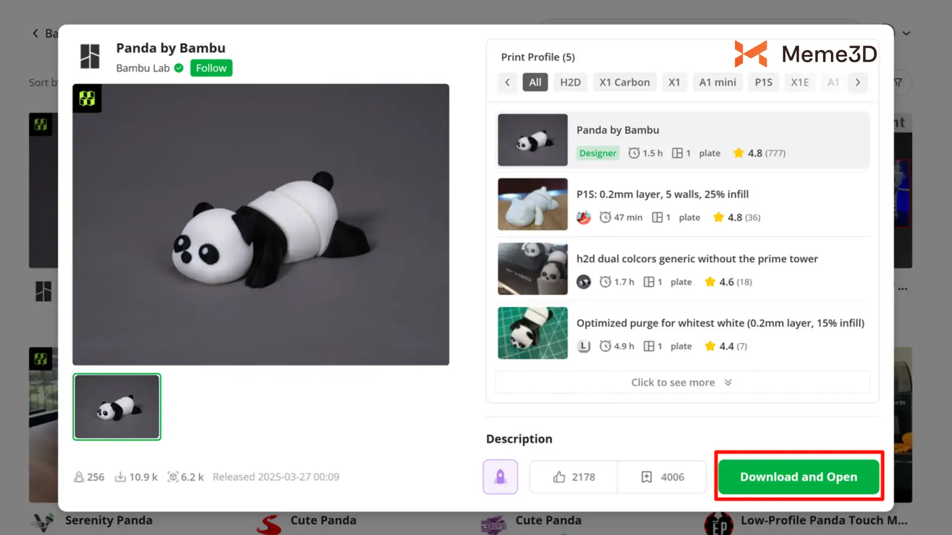 Sau khi tìm thấy và mở tệp, chúng ta có thể chọn tùy chọn Tải xuống và Mở để mở dự án trực tiếp trong Bambu Studio.
