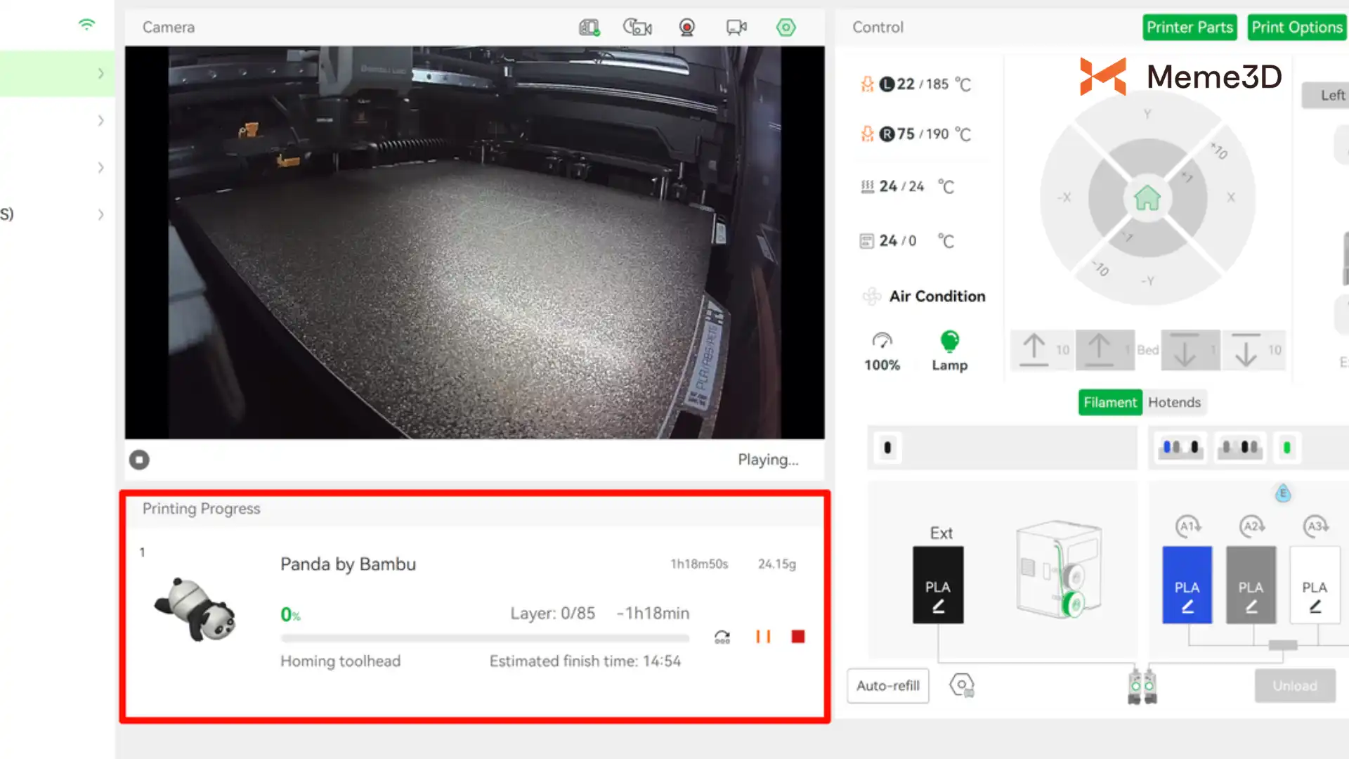 Sau khi lệnh in được gửi đi, H2C sẽ tự động xử lý phần còn lại. Nó sẽ bắt đầu bằng việc tải xuống tệp in và chuẩn bị cho quá trình in. Điều này bao gồm làm nóng vòi phun và bàn nhiệt , thực hiện kiểm tra hiệu chuẩn nhanh và chuẩn bị sợi nhựa trước khi bắt đầu in.