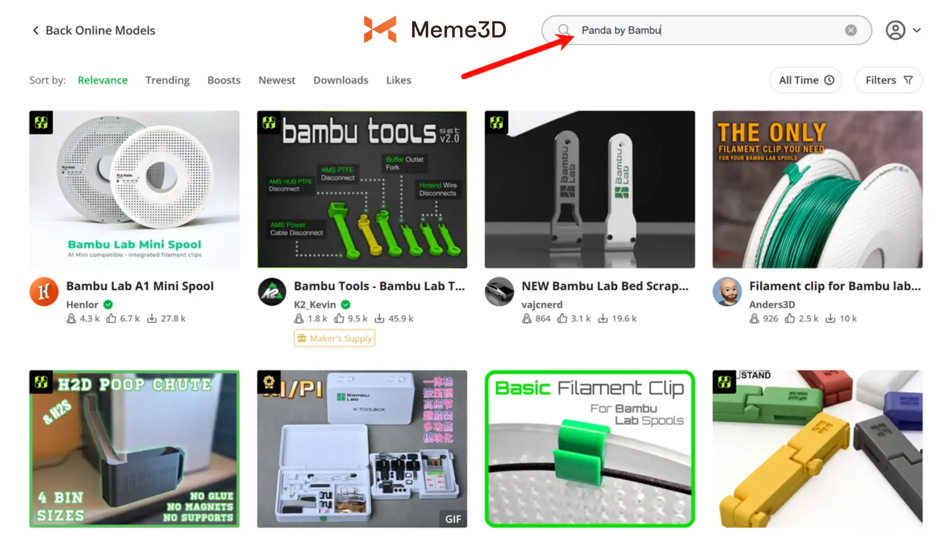Từ đây, chúng ta có thể xem các mẫu có sẵn để in. Ví dụ, hãy sử dụng thanh tìm kiếm để tìm bản in “Panda by Bambu”.
