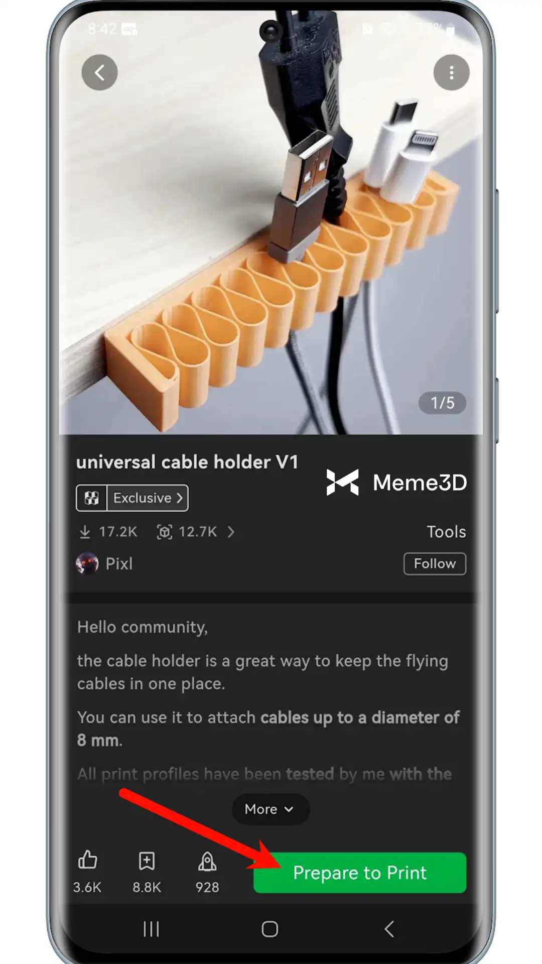 Bạn sẽ được chuyển đến trang của mô hình, nơi bạn có thể tìm thấy thông tin chi tiết, bao gồm các khuyến nghị về cách in, loại sợi in được đề xuất và các mẹo hữu ích khác để đảm bảo bản in thành công. Khi đã sẵn sàng, chỉ cần nhấn nút Chuẩn bị in.