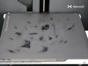 Một trong những vấn đề phổ biến nhất bạn có thể gặp phải khi in 3D với máy H2C là độ bám dính của bản i trên bàn in (build plate). Nguyên nhân thường gặp nhất là do dầu mỡ hoặc các chất bẩn khác dính trên bề mặt. Trong ví dụ bên dưới, bạn có thể thấy bàn in PEI trơn (Smooth PEI plate) trên máy P1S có dấu hiệu dính dầu mỡ rõ ràng, cần được vệ sinh sạch sẽ để tránh tình trạng mất độ bám dính.