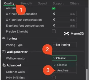 Một cách để khắc phục vấn đề này là thay đổi cài đặt Trình tạo Tường (Wall generator) trong Bambu Studio từ chế độ Cổ điển (Classic) sang chế độ Arachne. Tùy chọn này sử dụng một thuật toán tính toán đường in khác biệt, giúp mang lại kết quả in tốt hơn rất nhiều đối với các vật thể có chi tiết nhỏ.