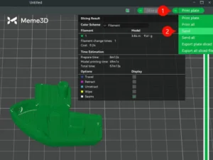 Sau khi áp dụng các thiết lập, hãy nhấp vào “Slice plate” sau khi chọn tùy chọn cắt lát để tạo tệp .gcode.