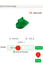 Trong một số trường hợp, khi không có kết nối internet, bạn có thể muốn in bằng ổ USB flash gắn vào máy in. Máy in Bambu Lab H2C hỗ trợ tính năng này và cho phép in ngoại tuyến với quy trình đơn giản. Dưới đây là hướng dẫn từng bước.