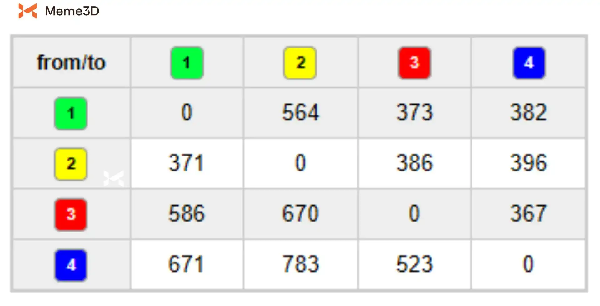 Hình ảnh bên dưới hiển thị bảng trong Bambu Studio, hiển thị các Thể tích Xả được tính toán cho mỗi lần thay đổi màu sắc có thể có trong một dự án. Chúng ta sẽ xem xét cách xem và quản lý các giá trị này trong phần Quản lý Thể tích Đùn.