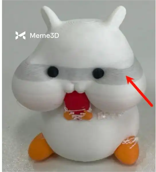 Hệ số nhân hoặc thể tích xả cụ thể quá thấp sẽ dẫn đến hiện tượng các lớp bị đổi màu như hình bên dưới.