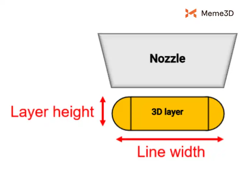 Layer height là chiều cao của mỗi lớp trong mô hình in 3D, trong khi line width là độ rộng của một đường filament nóng chảy được đùn ra từ nozzle trong quá trình in. Bạn có thể tìm hiểu thêm chi tiết về chiều cao lớp và chiều rộng lớp trên Bambu Wiki.