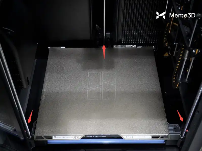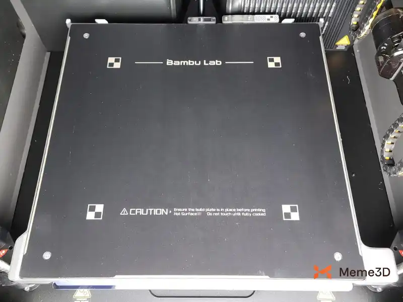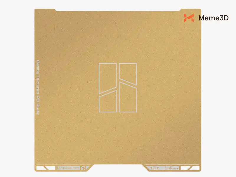 Máy in 3D H2C đi kèm với một tấm PEI có vân màu vàng , được gắn từ tính vào bàn nhiệt và đóng vai trò là bề mặt in chính . Tấm in linh hoạt này giúp tăng cường độ bám dính của vật in đồng thời giúp việc tháo mô hình dễ dàng hơn. Chỉ cần uốn cong nhẹ tấm in là các vật thể đã in có thể dễ dàng tách ra.