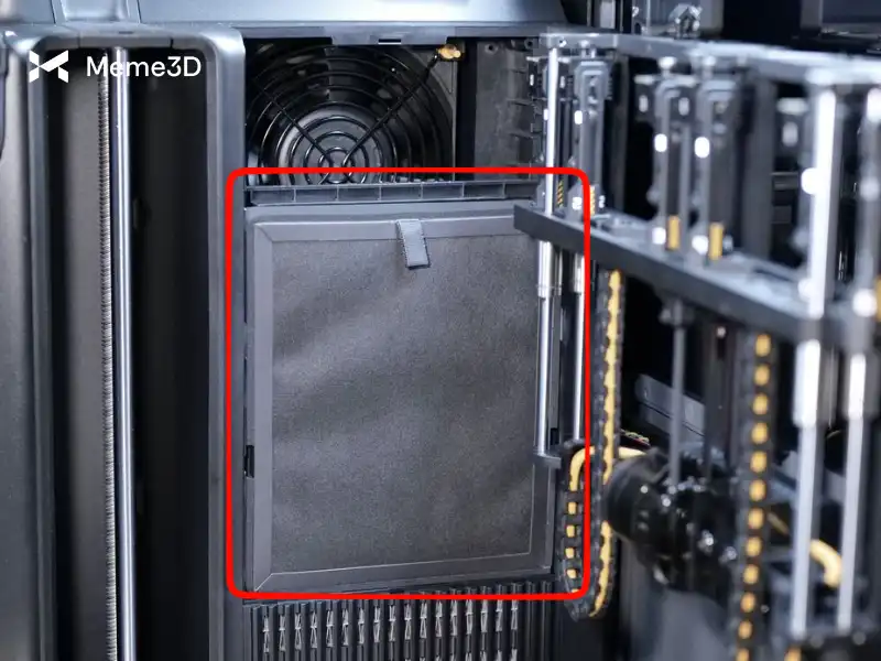 Bộ lọc buồng H2C được đặt phía trước quạt hút khí buồng và phía trên bộ phận gia nhiệt buồng ở phía sau máy in. Khi quạt hút khí buồng hút không khí từ buồng in, nó sẽ tùy chọn hút không khí qua bộ lọc này để đảm bảo không khí được lọc trước khi thải ra ngoài. Chức năng này được máy in điều khiển tự động tùy thuộc vào loại sợi in được sử dụng.