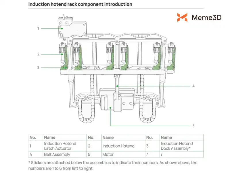 Giá đỡ đầu phun cảm ứng được lắp đặt ở phía bên phải của buồng in và được cố định bằng 4 vít. Chức năng chính của nó là cho phép tự động chuyển đổi và lưu trữ các đầu phun cảm ứng. Nó hỗ trợ thay thế hoàn toàn tự động tối đa sáu đầu phun cảm ứng mà không cần bất kỳ sự can thiệp thủ công nào. Đồng thời, giá đỡ tích hợp các cảm biến thông minh liên tục giám sát và cung cấp phản hồi về vị trí và trạng thái hoạt động của từng đầu phun cảm ứng, đảm bảo hiệu suất in ổn định và đáng tin cậy.