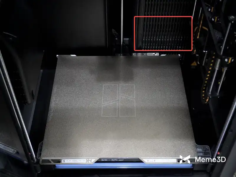 Bộ phận gia nhiệt buồng in được đặt bên dưới ống xả và bộ lọc ở phía sau máy in. Bộ phận gia nhiệt này được sử dụng để chủ động tăng nhiệt độ buồng in lên trên nhiệt độ môi trường (lên đến 65°C) đối với các loại sợi in cao cấp hơn, vốn dễ bị cong vênh hoặc gặp các vấn đề khác về chất lượng in khi làm nguội quá nhanh trong hoặc sau khi in.