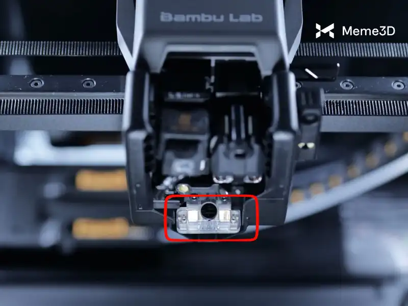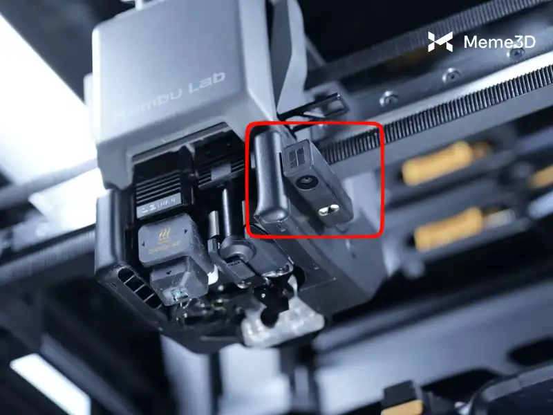 Camera trên đầu công cụ được đặt ở phía bên phải của đầu công cụ, hướng xuống phía bàn in. Nó hỗ trợ độ phân giải 1080p 30fps và được sử dụng để hiệu chuẩn độ chính xác chuyển động, hiệu chuẩn độ lệch vòi phun độ chính xác cao, và nhận dạng mã định danh bàn in và nền tảng laser.
