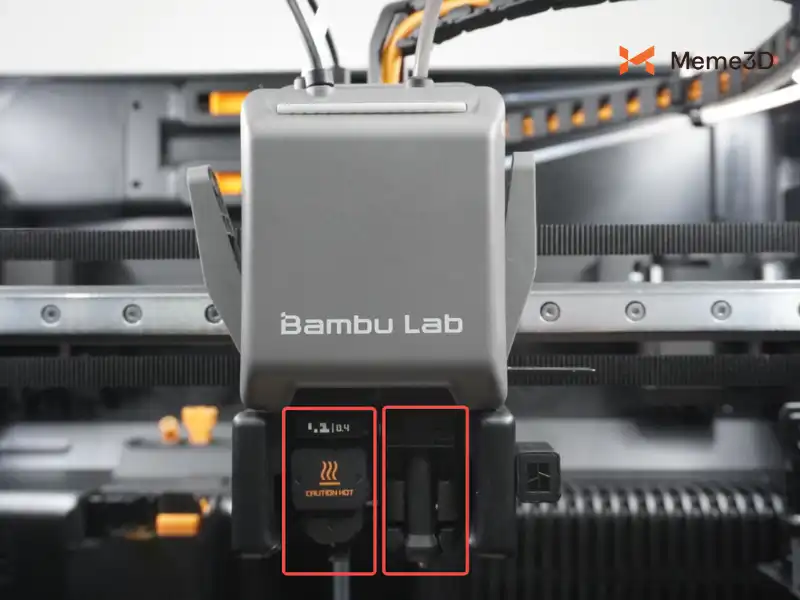 Hệ thống cắt sợi nhựa sẽ cắt sợi nhựa giữa đầu đùn và đầu gia nhiệt, cho phép sợi nhựa được thu hồi. Kết hợp với bộ phận chặn cắt sợi nhựa và hệ thống AMS, máy in có thể tự động cắt và chuyển đổi sợi nhựa để in nhiều màu hoặc nhiều chất liệu.