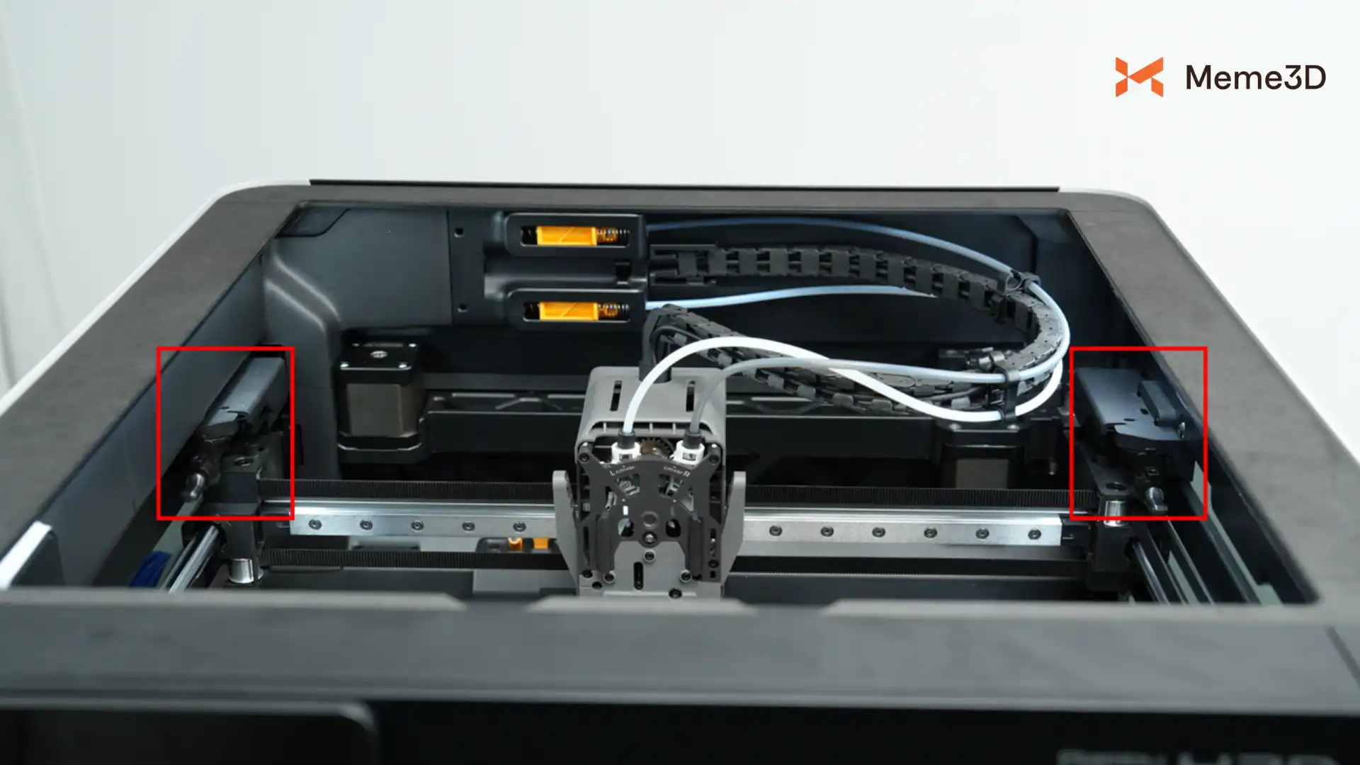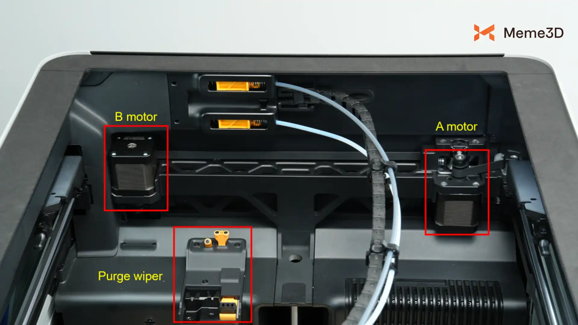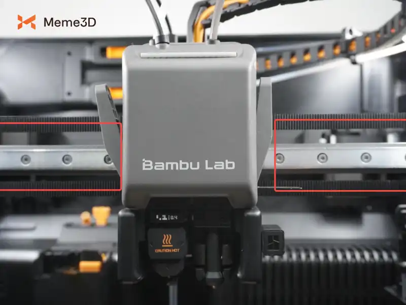 Máy in H2C sử dụng hệ thống chuyển động Core-XY với hai động cơ bước và nhiều ròng rọc dẫn hướng , cho phép di chuyển đầu in chính xác và hiệu quả trên trục X và Y. Mỗi động cơ được kết nối với đầu in bằng một dây đai truyền động độc lập, và sự chuyển động phối hợp của các động cơ và dây đai điều khiển chuyển động và vị trí của đầu in.