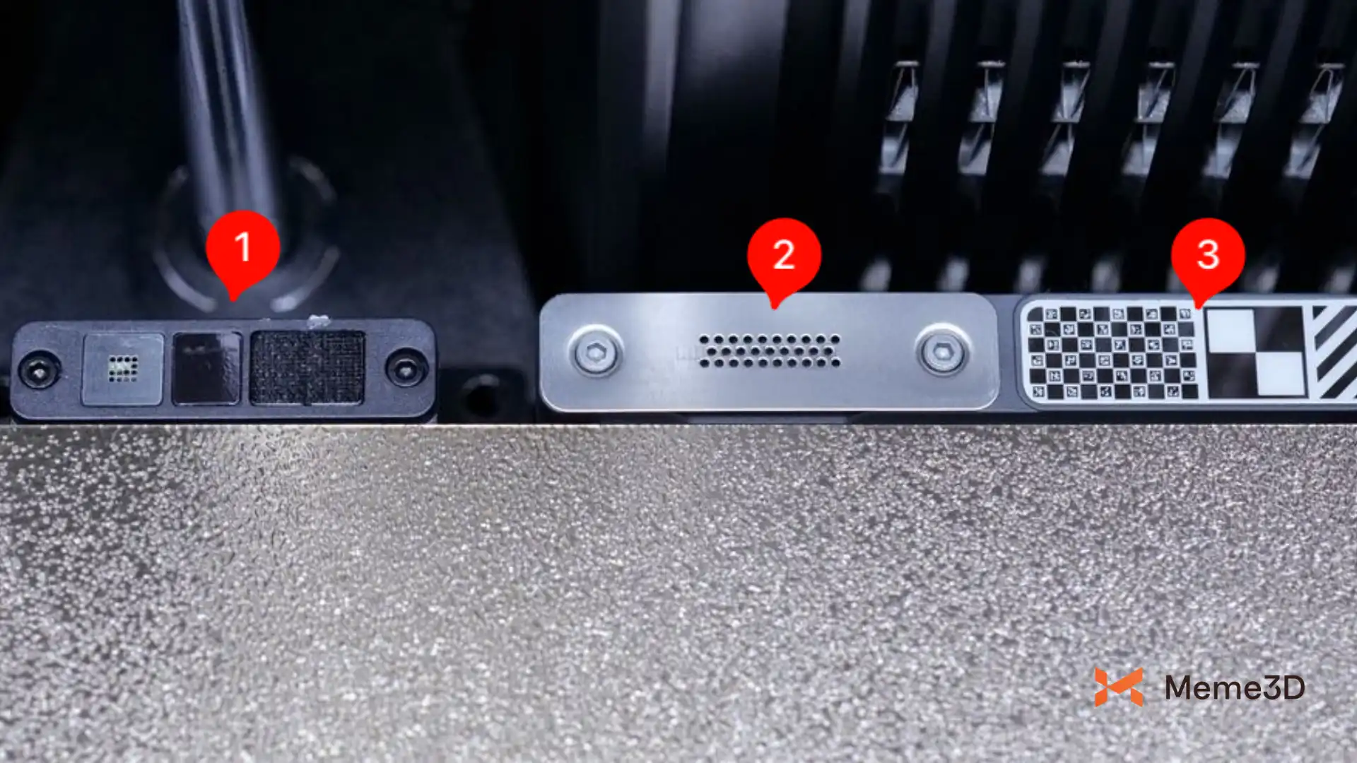 - Cảm biến hiệu chuẩn độ lệch vòi phun – Được sử dụng để hiệu chuẩn độ lệch của đầu phun bên trái và bên phải trên mặt phẳng XY nhằm đảm bảo vị trí chính xác của hai đầu phun được tính toán chính xác. Nó cũng bao gồm một cảm biến nhiệt có thể thay đổi màu sắc khi in.