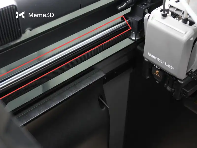 Trục X là chuyển động sang trái và phải của đầu in . Nó di chuyển dọc theo một thanh ray tuyến tính hình chữ nhật trên một bộ vòng bi để đảm bảo sự vừa khít và chuyển động mượt mà, chính xác được điều khiển bởi các động cơ A và B.