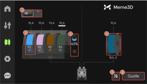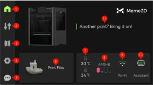 - Trạng thái AMS – Hiển thị các thiết bị AMS đã kết nối và mở menu cấu hình Filament và AMS, nơi có thể quản lý các thiết bị AMS.