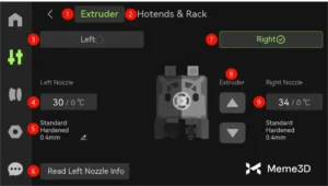 - Bên phải – Hiển thị cài đặt máy đùn bên phải