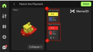 - Đầu đùn bên trái – Nhấp vào đây cho phép bạn chọn loại sợi nhựa cho đầu đùn bên trái.