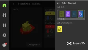- Cuộn dây – Chạm vào bất kỳ cuộn dây nào được hiển thị trong AMS sẽ cung cấp các điều khiển để chỉnh sửa, nạp hoặc phát hiện lại sợi nhựa được nạp trong khe đó. Nó được hiển thị khi thiết bị AMS được kết nối.