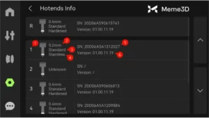 - Ống cứng tiêu chuẩn 0.4mm – Hiển thị thông tin của vòi phun bên trái hiện đang được lắp đặt. Có tùy chọn chỉnh sửa thông tin.