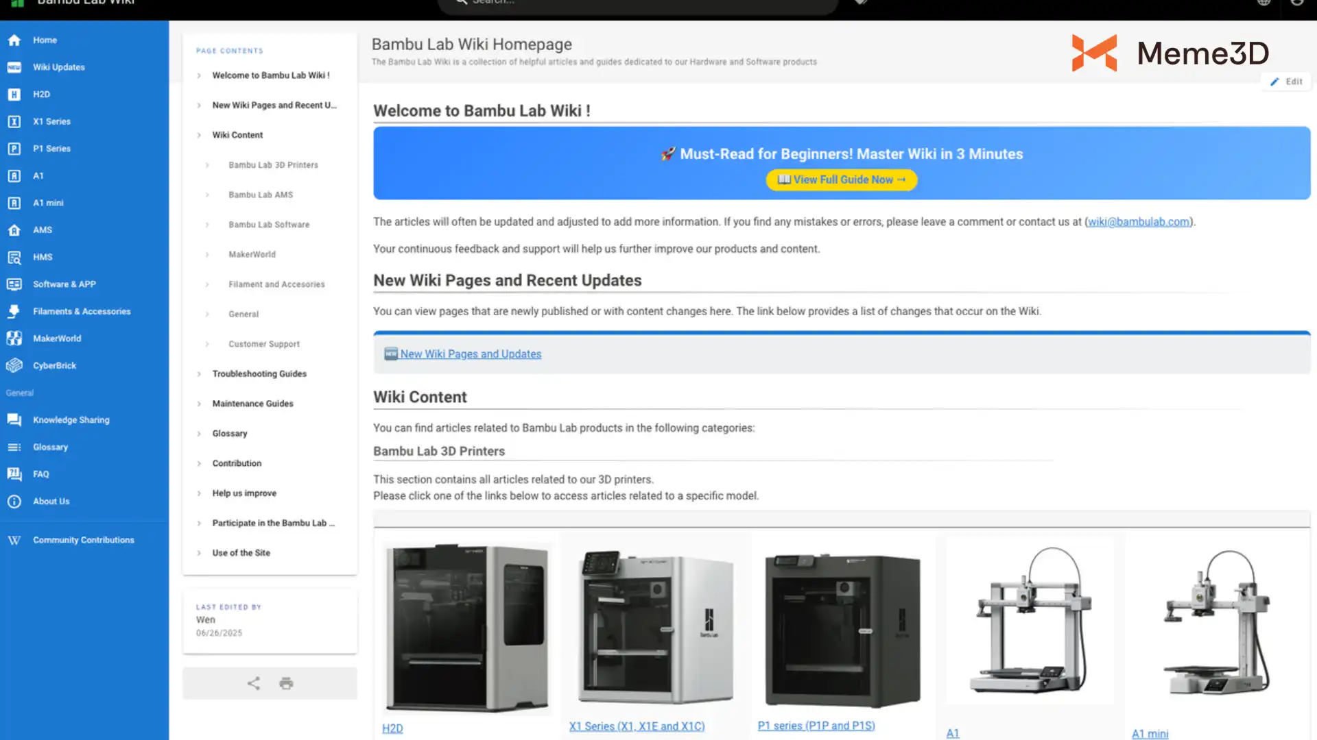 Có sẵn hướng dẫn chi tiết về cách sử dụng Wiki của Bambu Lab, giải thích từng tính năng.
