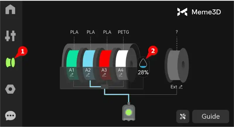 Bạn có thể theo dõi độ ẩm và nhiệt độ theo thời gian thực bằng cách nhấp vào góc trên bên trái. Nếu bạn đã kết nối nhiều thiết bị AMS, bạn cũng có thể sử dụng tùy chọn đó để chuyển đổi giữa các thiết bị AMS. Bạn sẽ có thể xem độ ẩm, nhiệt độ và thời gian còn lại.