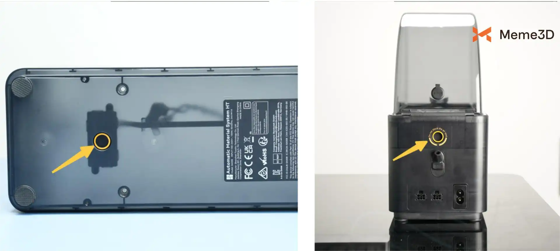 Trong quá trình sấy, máy sấy AMS 2 Pro sẽ đẩy hơi ẩm ra ngoài qua các lỗ thông hơi ở phía dưới và phía sau. Hãy đảm bảo rằng các lỗ này không bị tắc nghẽn để đạt hiệu quả sấy tối ưu.