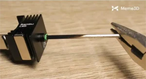 Sử dụng găng tay cách nhiệt, lấy cụm hotend ra khỏi giá đỡ bằng cách cầm vào phần tản nhiệt, tránh chạm vào đầu vòi phun.