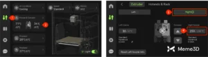 Chọn Hotend & Rack → chọn Induction Hotend ở bảng bên trái → nhấn Place. Máy sẽ tự động đặt Hotend vào giá đỡ (Dock Assembly).
