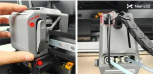 Nhấn cần gạt cắt dây filament để đảm bảo có thể tháo rời đầu phun nhiệt.