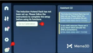 Sau khi hiệu chuẩn ban đầu, máy sẽ hiển thị thông báo trong phần HMS (1), hãy nhấp vào đó, sau đó chọn “Đi đến hiệu chuẩn” (2).